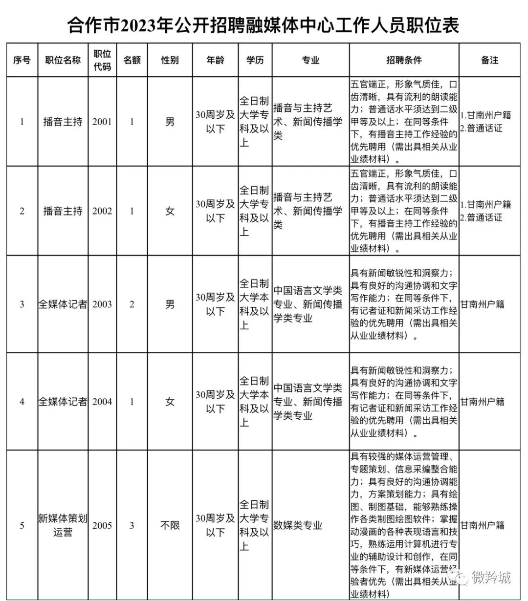 合作市2023年公開(kāi)招聘融媒體中心工作人員公告