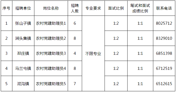 2023年計劃招聘農(nóng)村黨建助理員崗位5個,共計33人,具體如下: