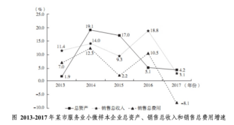問題:2017年該市服務(wù)業(yè)小微樣本企業(yè)銷售總收入比2013年增長:( )