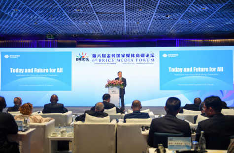 8月19日,金磚國(guó)家媒體高端論壇執(zhí)行主席、新華通訊社社長(zhǎng)傅華在第六屆金磚國(guó)家媒體高端論壇智庫(kù)報(bào)告發(fā)布暨研討會(huì)上進(jìn)行主旨發(fā)言。新華社記者 黃敬文 攝