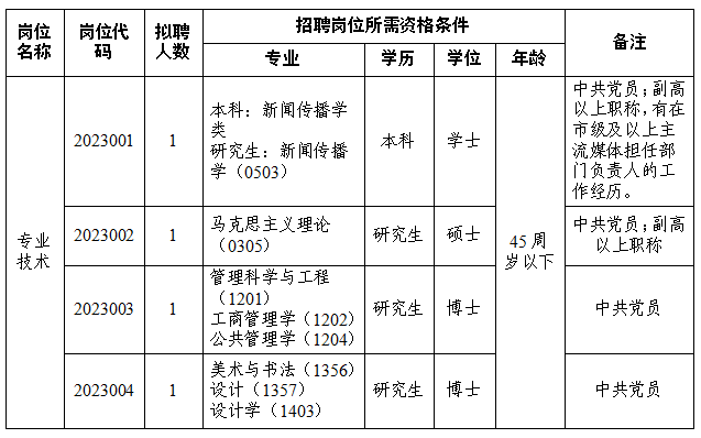 (二)公開招聘人員崗位表中的“45周歲以下”為“1977年8月31日以后出生”。
