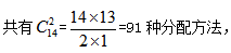 例1:將15塊相同的糖果分給3個(gè)小朋友,每人至少分1塊,有多少種分配方法( )?