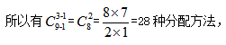 隔板模型,即將n個(gè)相同元素分給m個(gè)不同對(duì)象,要求元素全部分完,且每個(gè)對(duì)象至少分一個(gè)元素的模型,可見(jiàn)下題: