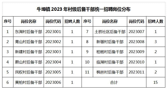 為進(jìn)一步加強(qiáng)全鎮(zhèn)村干部隊(duì)伍建設(shè),提升村級組織服務(wù)群眾的能力和水平,結(jié)合當(dāng)前鄉(xiāng)村振興工作實(shí)際,經(jīng)研究,決定開展牛埠鎮(zhèn)2023年村級后備干部公開招考工作。現(xiàn)將有關(guān)事項(xiàng)公告如下: