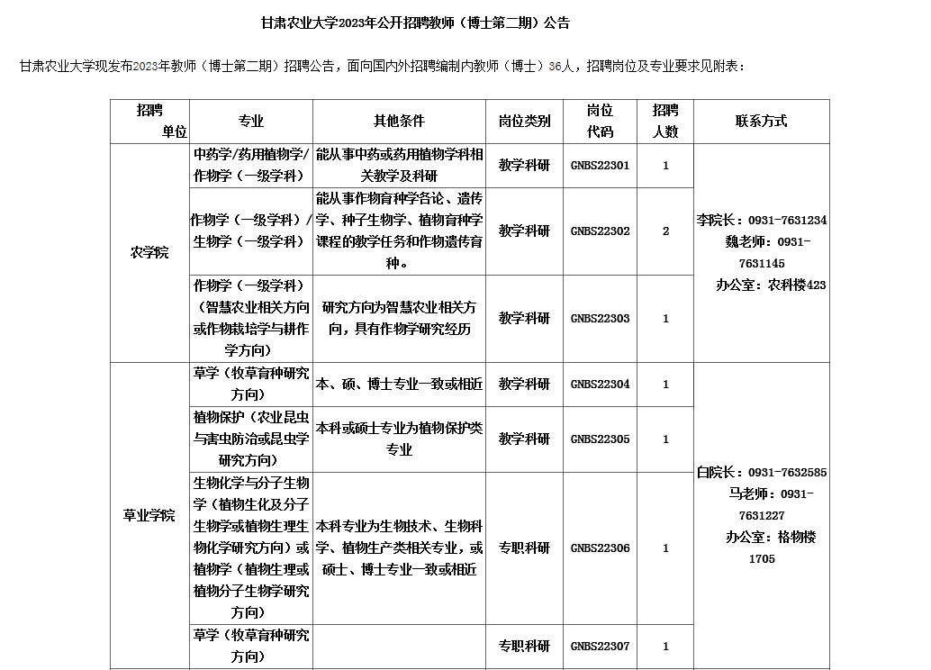 報(bào)名方式為網(wǎng)上報(bào)名,不收取報(bào)名費(fèi)。第二批博士招聘網(wǎng)上集中報(bào)名時(shí)間為2023年9月11日-9月18日。報(bào)名網(wǎng)站地址http://hrexam.gsau.edu.cn。
