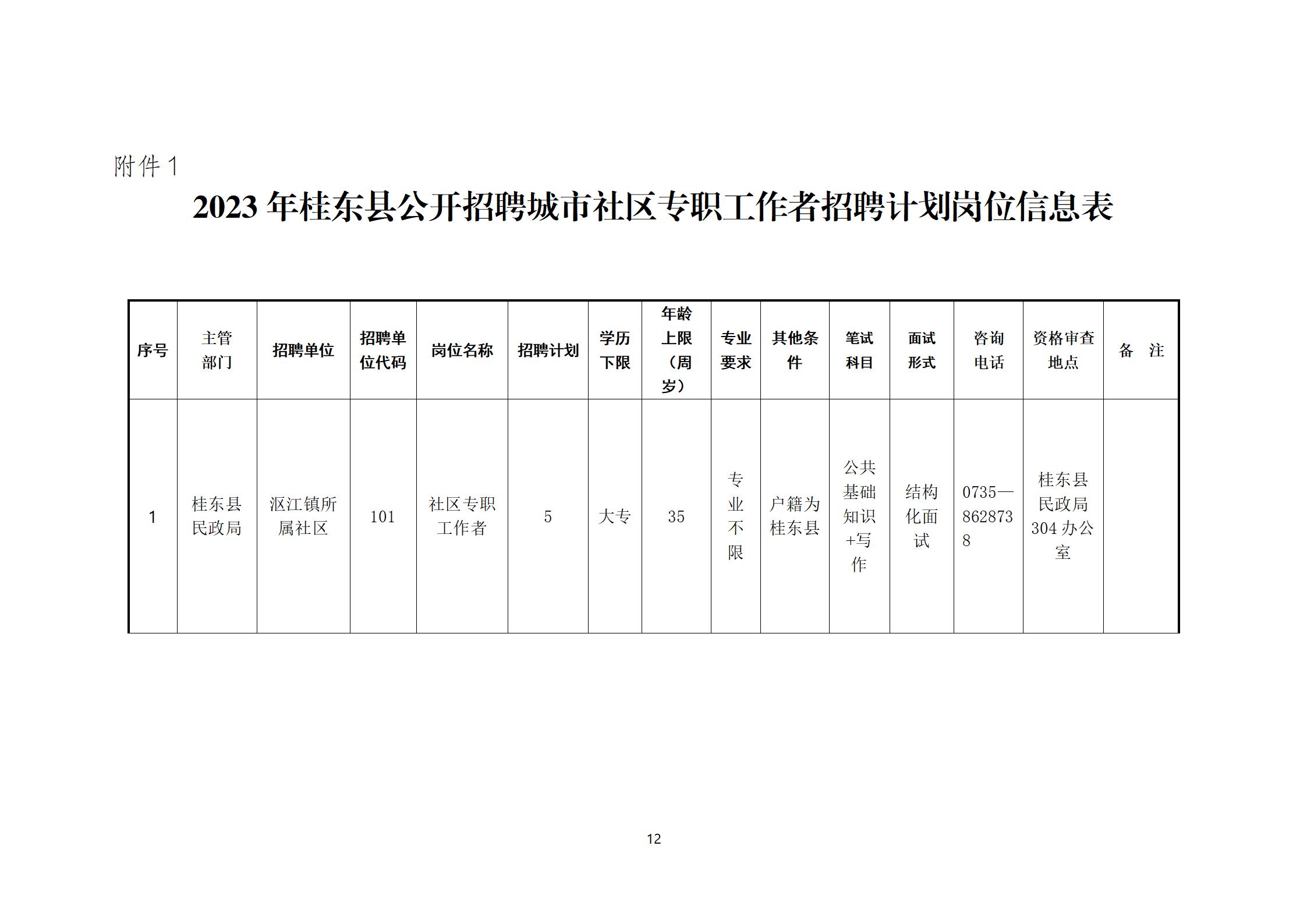 1、2023年桂東縣公開招聘城市社區(qū)專職工作者招聘計(jì)劃崗位信息表.docx