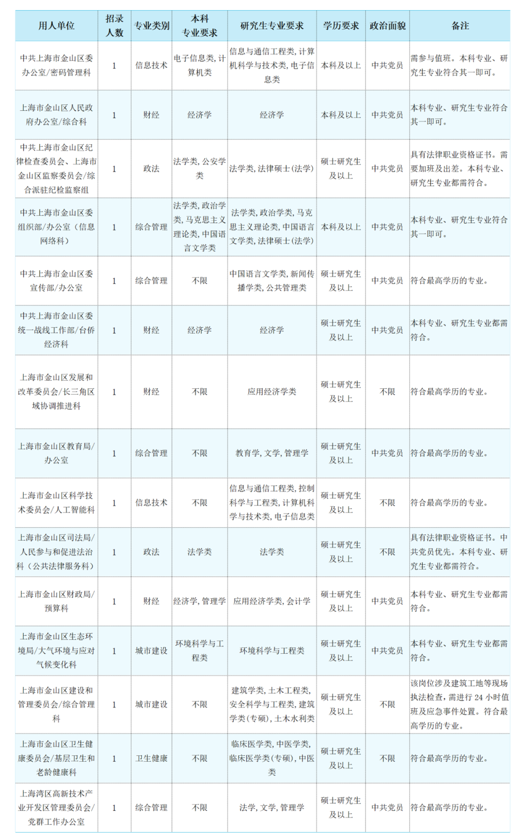 符合2024年上海市選調生招考公告中的高校范圍和基本條件(詳見下方報名網址),且所學專業(yè)及學歷等符合金山區(qū)招錄職位要求。