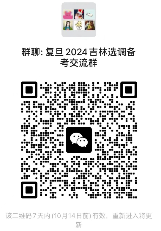 ?。ㄕ?qǐng)報(bào)名的同學(xué)通過微信掃碼進(jìn)入2024吉林省選調(diào)生交流群。二維碼失效后可通過搜索“fdupengpeng”添加微信號(hào),并備注“姓名-院系-學(xué)號(hào)-吉林選調(diào)生”及時(shí)入群)