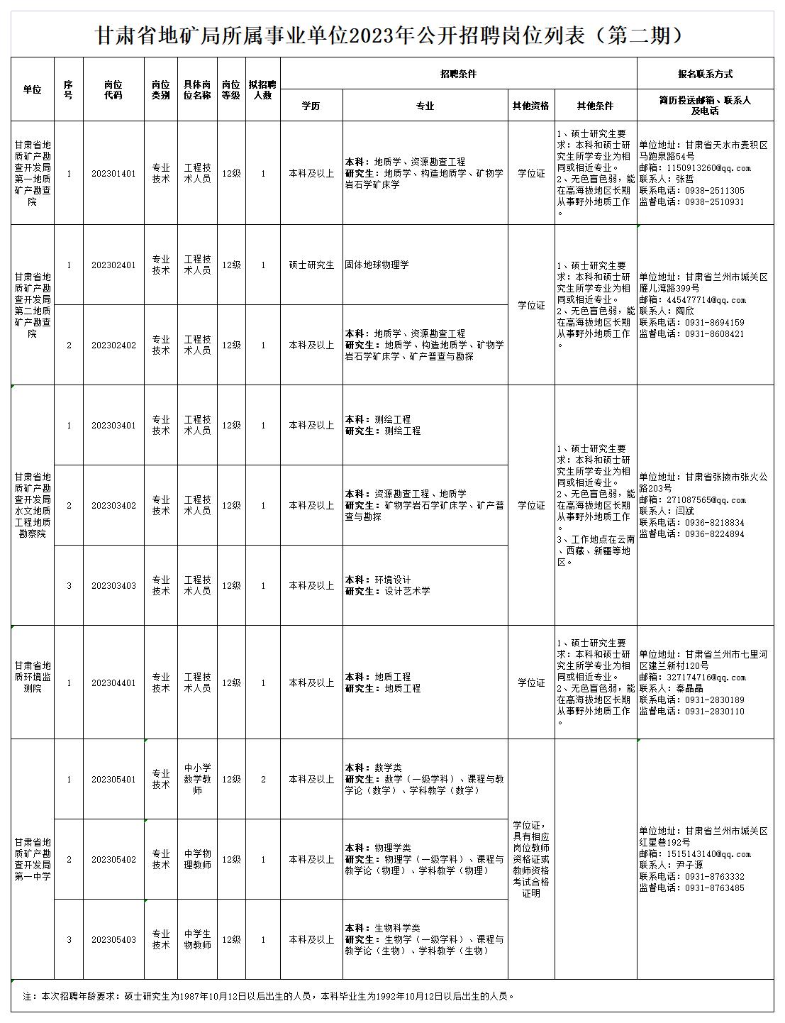1.《甘肅省地礦局所屬事業(yè)單位2023年公開招聘崗位列表》(第二期)