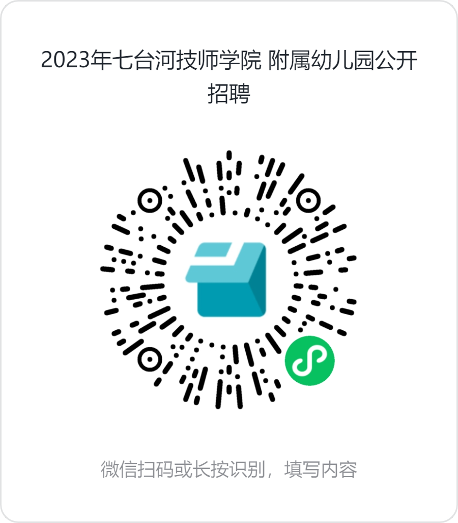 本次招聘采取網(wǎng)上報(bào)名的方式。詳細(xì)閱讀2023年七臺(tái)河技師學(xué)院附屬幼兒園公開招聘教師考生承諾書(附件2),如無(wú)異議需簽字確認(rèn),掃描二維碼,填寫金山表單進(jìn)行報(bào)名,并上傳相關(guān)電子材料。所有考試各個(gè)環(huán)節(jié)的時(shí)間通知和具體要求均通過(guò)七臺(tái)河職業(yè)學(xué)院官網(wǎng)、七臺(tái)河職業(yè)學(xué)院微信公眾號(hào)和七臺(tái)河技師學(xué)院附屬幼兒園微信公眾號(hào)公告,不再另行通知。凡未及時(shí)關(guān)注網(wǎng)站信息影響聘用考試錄取的,后果由考生自負(fù),考生需每日關(guān)注網(wǎng)站及公眾號(hào)公告信息。