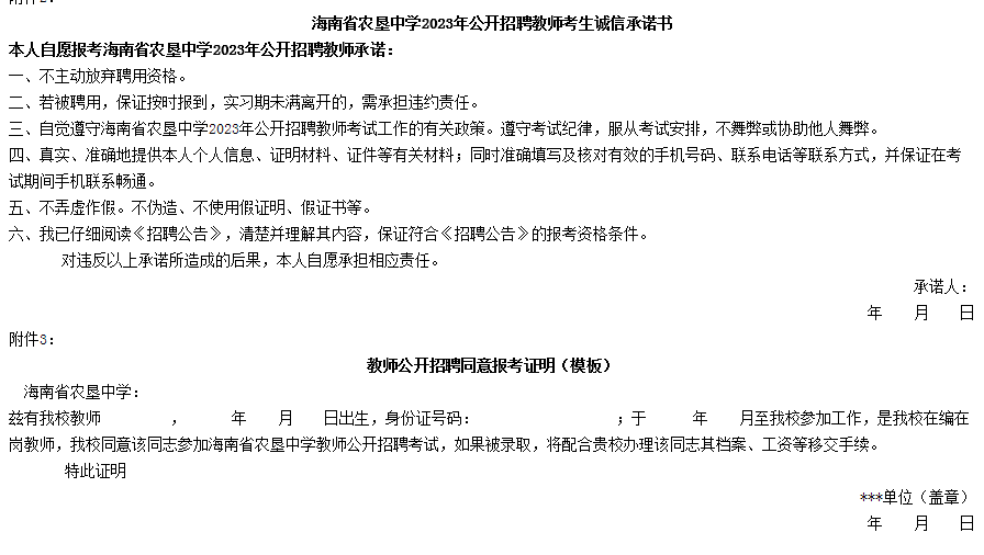 3.需有一年(含一年)以上教學(xué)工作經(jīng)驗(yàn),一經(jīng)聘用需2024年1月份到崗工作。以上要求具體見附件《海南省農(nóng)墾中學(xué)2023年公開招聘教師計(jì)劃表》。