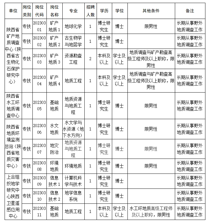 陜西省地質(zhì)調(diào)查院2023年公開招聘博士研究生和高級專業(yè)技術(shù)人員公告