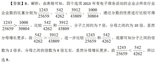 問(wèn)題:2013年,有電子商務(wù)活動(dòng)的企業(yè)占所在行業(yè)企業(yè)數(shù)比重最大的是:( )