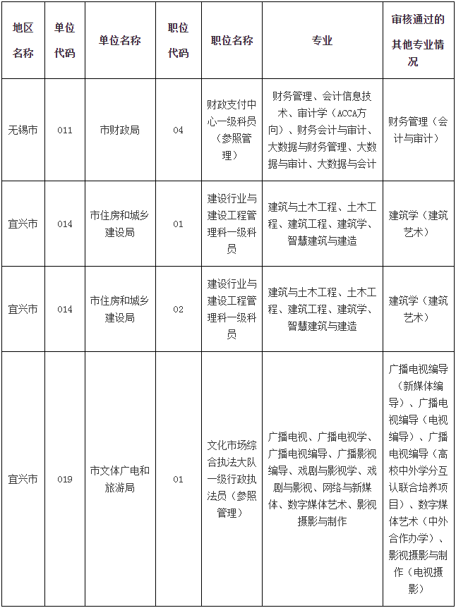 無錫市2024年度考錄公務員有關職位專業(yè)審核情況的公告(三)