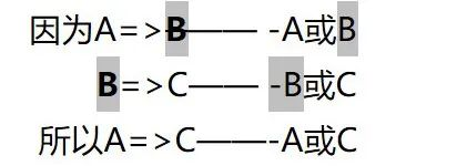 矛盾公式:-(P或Q)=>-P且-Q;A且-B=>-A或B。