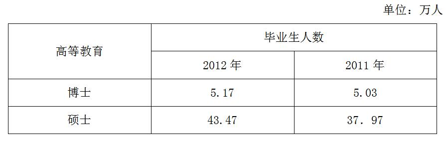 問(wèn)題:2012年我國(guó)研究生畢業(yè)生人數(shù)較上一年增長(zhǎng)了?( )