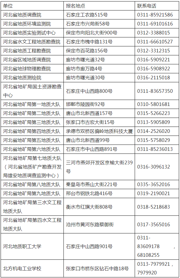 政策咨詢電話:0311-66880300(河北省地礦局人事教育處)