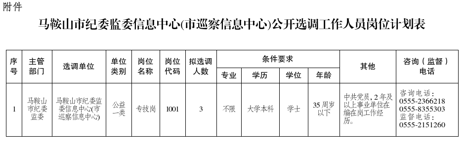 附件:馬鞍山市紀(jì)委監(jiān)委信息中心(市巡察信息中心)公開選調(diào)工作人員崗位計(jì)劃表