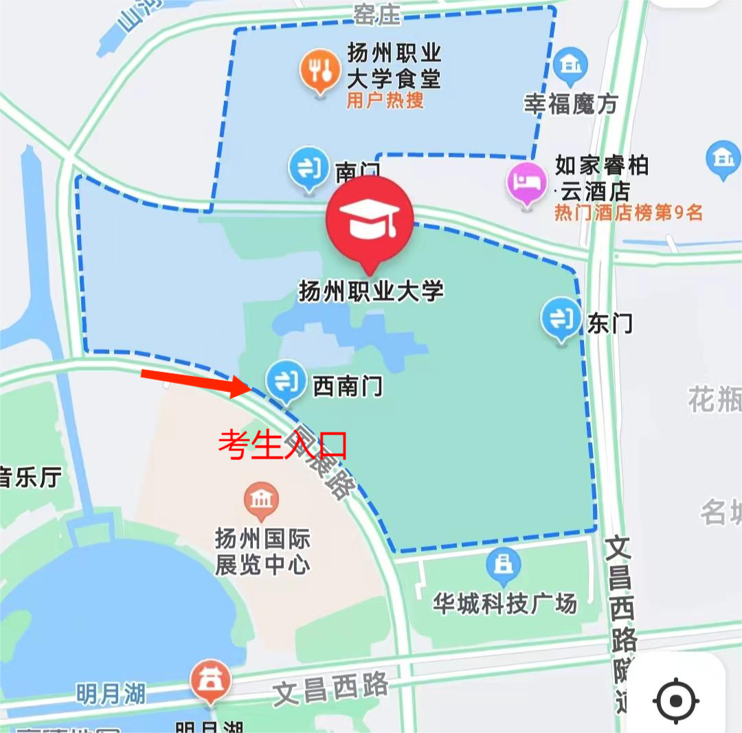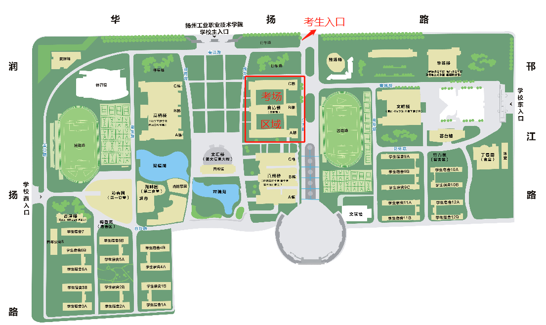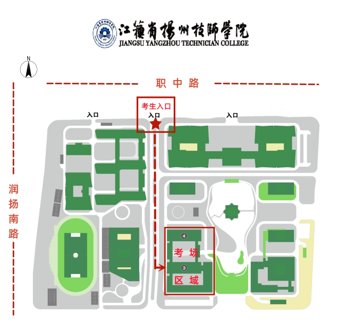 友情提示:請從揚(yáng)州市職業(yè)大學(xué)西門(國展路,國展中心對面)進(jìn)入,由于西門離考場有一段距離,請考生盡量提早到達(dá)考場所在教學(xué)樓,可乘坐101路公交車。