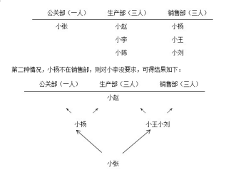 第二種情況,小楊不在銷售部,則對(duì)小李沒要求,可得結(jié)果如下: