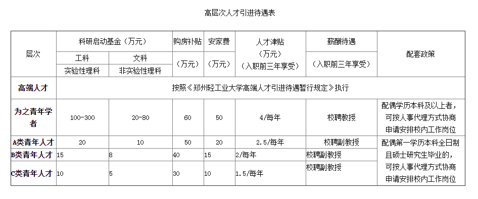 按照《鄭州輕工業(yè)大學(xué)高端人才引進(jìn)待遇暫行規(guī)定》執(zhí)行。
