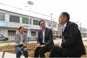 2023年10月11日,在江蘇省淮安市漣水縣紅窯鎮(zhèn)金沙村,漣水縣人大代表章金純(中)聽(tīng)取黨員群眾關(guān)于村級(jí)發(fā)展的意見(jiàn)建議。新華社記者 季春鵬 攝