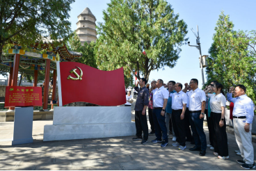 2023年6月30日,在陜西延安寶塔山參觀的黨員干部重溫入黨誓詞。新華社記者 張博文 攝