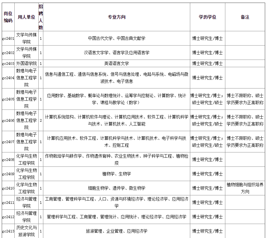 備注:1.我校長期面向海內(nèi)外招聘各學科、各專業(yè)領(lǐng)域的博士、歡迎不在《高層次人才崗位需求表》內(nèi)的其他學科專業(yè)的博士投簡歷應聘