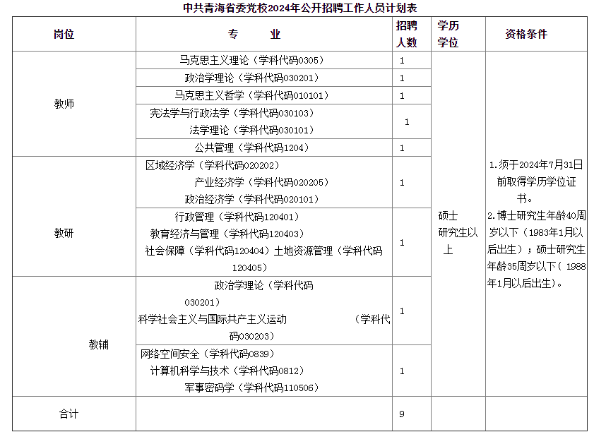以上目錄未列入的各類新專業(yè)符合報(bào)考專業(yè)要求的,經(jīng)中共青海省委黨校研究后確定是否具備報(bào)考資格。招聘過(guò)程中各環(huán)節(jié)具體實(shí)施時(shí)間以中共青海省委黨校官網(wǎng)公布的相關(guān)公告及通知為準(zhǔn)。
