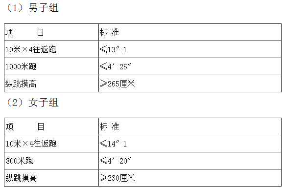 按照《關(guān)于印發(fā)<公安機(jī)關(guān)錄用人民警察體能測評項(xiàng)目和標(biāo)準(zhǔn)(暫行)>的通知》(人社部發(fā)〔2011〕48號)執(zhí)行,如果在體能測評前國家出臺新的體能測評標(biāo)準(zhǔn),則按國家有關(guān)部門最新的體能測評標(biāo)準(zhǔn)執(zhí)行。具體條件如下:
