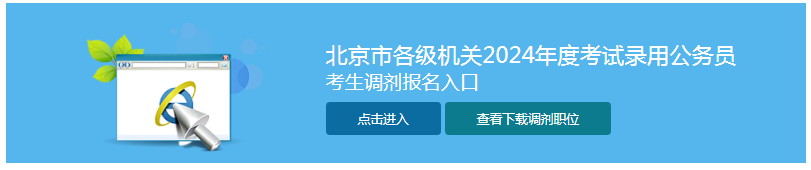 2024年北京公務(wù)員考試調(diào)劑報(bào)名1月15日至16日舉行,點(diǎn)擊下方鏈接進(jìn)行報(bào)名: