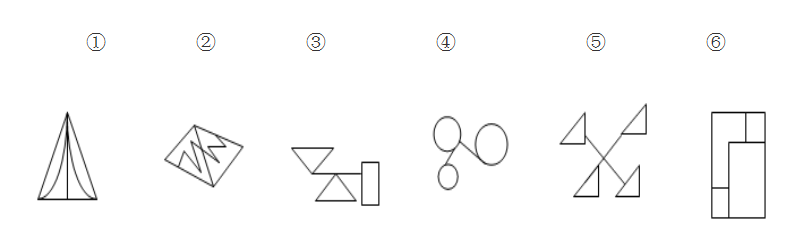 例題:把下面的六個圖形分為兩類,使每一類圖形都有各自的共同特征或規(guī)律,分類正確的一項是: