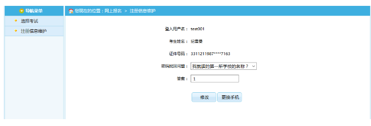 在此頁面可以完成對(duì)考生個(gè)人信息的修改。