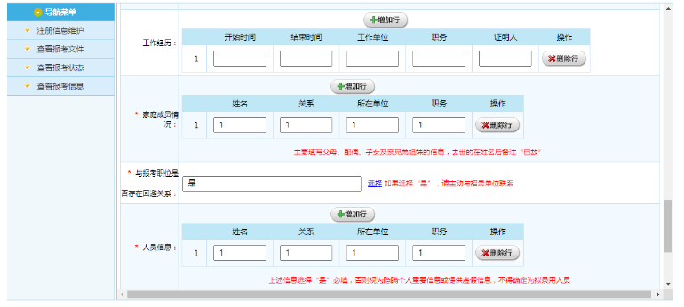 填寫報(bào)名信息必須真實(shí)、準(zhǔn)確、完整,報(bào)考者提交的有關(guān)申請(qǐng)材料或者信息不實(shí)的,認(rèn)定為報(bào)名無效,終止錄用程序;信息填報(bào)不全導(dǎo)致未通過招錄機(jī)關(guān)資格審查的,后果由報(bào)考者自負(fù)。對(duì)學(xué)習(xí)和工作經(jīng)歷欄目,應(yīng)按時(shí)間先后順序,從高中開始,填寫何年何月至何年何月在何單位(學(xué)校)工作(學(xué)習(xí))、任何職。對(duì)大學(xué)期間的學(xué)習(xí)經(jīng)歷,須填寫清楚學(xué)校、院系、專業(yè)名稱。