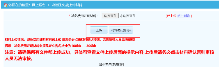 上傳后,請(qǐng)務(wù)必點(diǎn)擊“材料確認(rèn)”,等待工作人員審核。