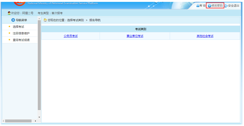 通過點(diǎn)擊系統(tǒng)右上角的“修改密碼”選項(xiàng),如下圖所示: