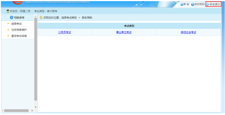 2.要避免多人在同一臺(tái)打開的機(jī)器上報(bào)名,如需多人使用同一臺(tái)機(jī)器,則應(yīng)注意:一人報(bào)名完畢并安全退出系統(tǒng)后(或關(guān)機(jī)重啟機(jī)器后),第二人方可開始報(bào)名。