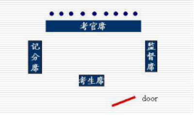 考場設(shè)置:面試室內(nèi)除了考官外,一般還有記分員、計時員,還有監(jiān)察人員全程監(jiān)督,同時對面試全過程進(jìn)行錄像保存。評委一般情況下由7-9人組成,其中一人為主考官。主考官負(fù)責(zé)宣讀面試指導(dǎo)語,強調(diào)注意事項,提問等,考生在規(guī)定時限內(nèi)回答給定的問題。