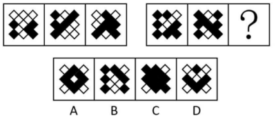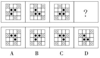 【例2】從所給四個(gè)選項(xiàng)中,選擇最合適的一個(gè)填入問號(hào)處,使之呈現(xiàn)一定的規(guī)律性( )。