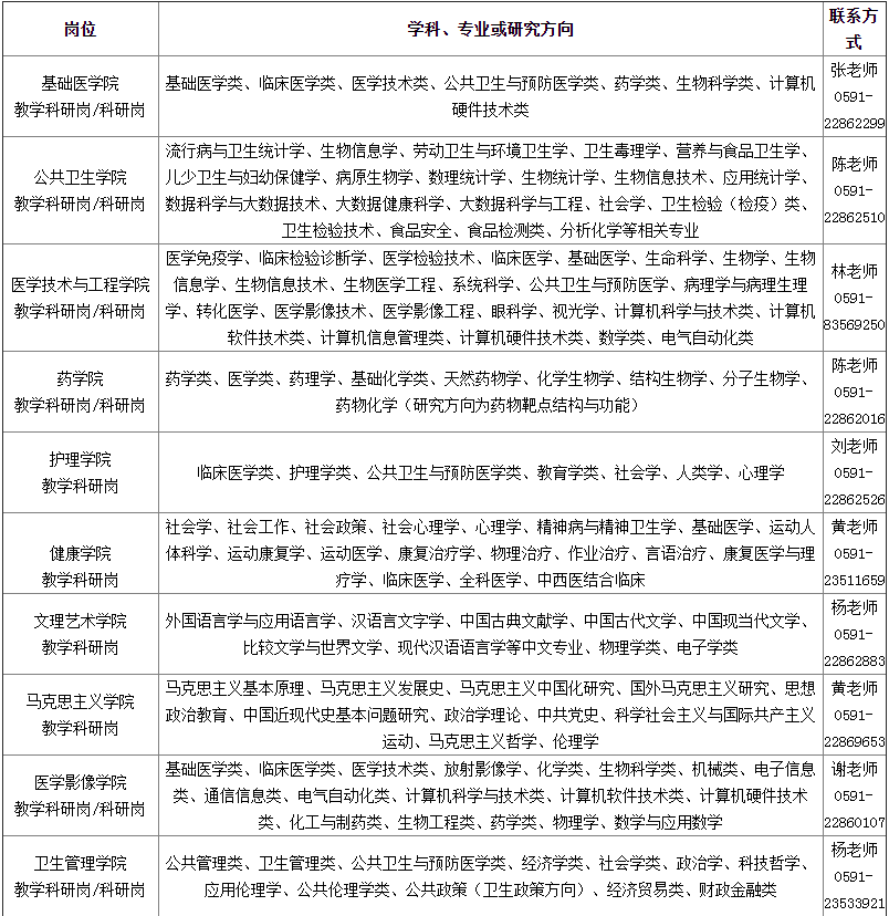 聯(lián)系地址:福建省福州市大學(xué)新區(qū)學(xué)府北路1號(hào)福建醫(yī)科大學(xué)人事處(郵編:350122)