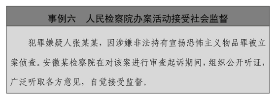 ??——拓寬監(jiān)督渠道。中國(guó)執(zhí)法司法辦案機(jī)關(guān)持續(xù)拓寬監(jiān)督渠道,通過(guò)多種方式強(qiáng)化社會(huì)監(jiān)督,不斷增強(qiáng)執(zhí)法司法透明度,防止執(zhí)法權(quán)、司法權(quán)被濫用。人民法院通過(guò)審判流程信息公開、裁判文書公開、執(zhí)行信息公開、庭審公開等加大司法公開力度,及時(shí)公布法院審判、執(zhí)行工作情況。人民檢察院推行檢務(wù)公開,依法公開與檢察職權(quán)相關(guān)的活動(dòng)和事項(xiàng),并充分運(yùn)用現(xiàn)代化信息手段,建立檢務(wù)公開信息平臺(tái),設(shè)置電子顯示查詢?cè)O(shè)備,開通網(wǎng)站、網(wǎng)頁(yè)等,方便檢務(wù)信息查詢。公安機(jī)關(guān)推行警務(wù)活動(dòng)公開,行政處罰遵循公開原則,執(zhí)法過(guò)程、處罰結(jié)果自覺接受社會(huì)和公民的監(jiān)督。司法行政機(jī)關(guān)推行獄務(wù)公開,將監(jiān)獄執(zhí)法工作的條件、程序、結(jié)果依法向社會(huì)公開,加強(qiáng)監(jiān)獄工作的規(guī)范化、制度化、法治化建設(shè),規(guī)范執(zhí)法行為。