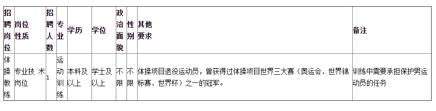 福建省體操技巧運動管理中心因工作需要,擬面向具有突出貢獻的退役運動員公開招聘教練員1名。根據《事業(yè)單位公開招聘工作人員暫行規(guī)定》和《福建省省屬事業(yè)單位公開招聘工作人員考試暫行辦法》等有關規(guī)定,制定具體方案如下: