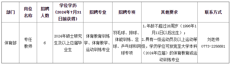 桂林電子科技大學2024年體育部專任教師(碩士研究生)招聘公告