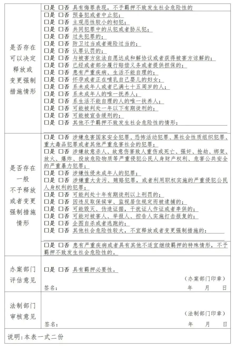 (22)其他不予羈押不致發(fā)生社會危險性的情形。