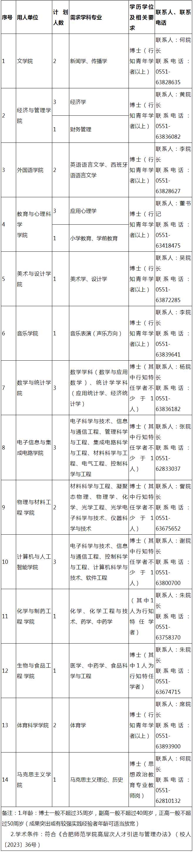 合肥師范學(xué)院2024年度引進(jìn)高層次人才公告