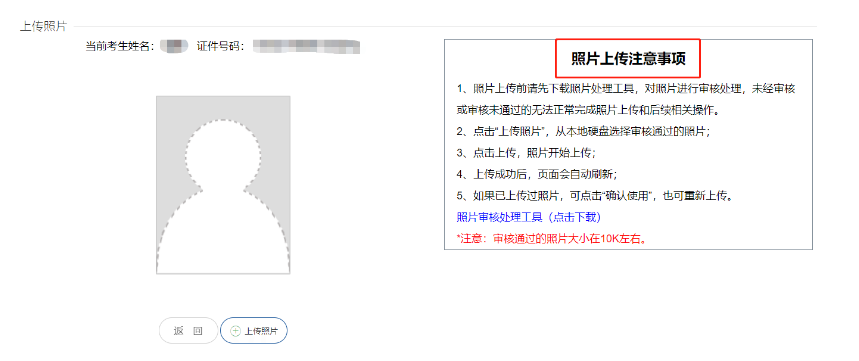 2.報(bào)考人員應(yīng)下載系統(tǒng)提供的“照片審核處理工具”對照片進(jìn)行處理,未通過“照片審核處理工具”進(jìn)行處理的照片無法上傳。報(bào)考人員應(yīng)對照片質(zhì)量負(fù)責(zé),如因照片質(zhì)量影響考試的,后果由報(bào)考人員承擔(dān)。