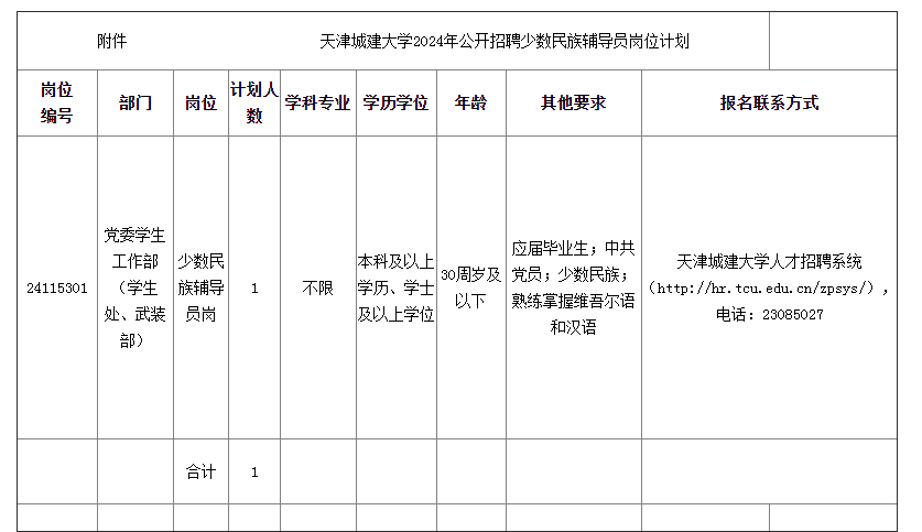 附件:天津城建大學(xué)2024年公開招聘少數(shù)民族輔導(dǎo)員崗位計(jì)劃