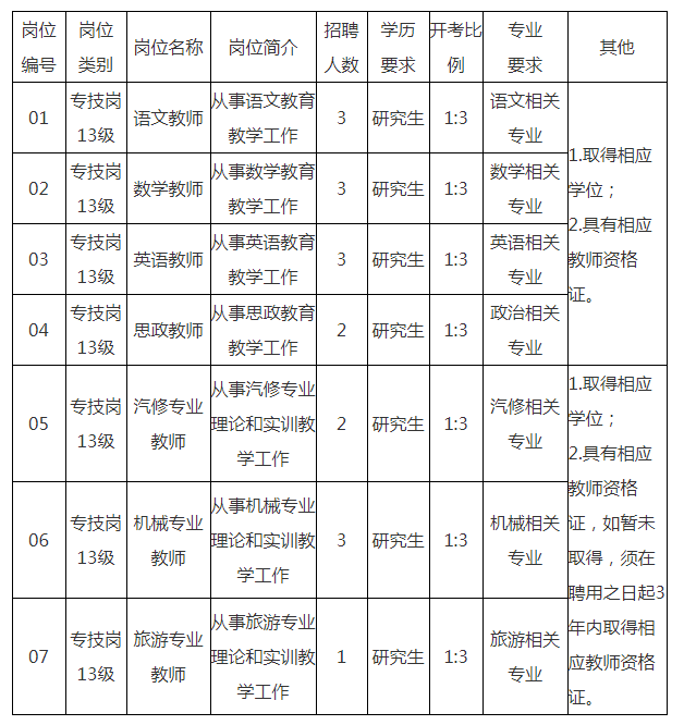 7.具有相應教師資格證(報考01—04崗位的人員,2024屆普通高校畢業(yè)生須于2024年8月31日前提供相應教師資格證,其他報名人員須于報名時取得相應教師資格證;報考05—07崗位的人員須在聘用之日起3年內(nèi)取得該專業(yè)相應教師資格證,否則予以解聘)。