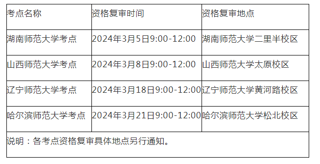 通過(guò)報(bào)名和資格初審的考生,均須參加資格復(fù)審,時(shí)間及地點(diǎn)計(jì)劃安排如下(如有變化另行通知):