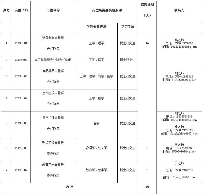 阜陽(yáng)職業(yè)技術(shù)學(xué)院2024年第一批高層次人才招聘公告(博士研究生)